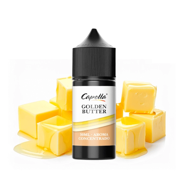 Capella Golden Butter aroma heeft de smaak van gekarameliseerde boter. Romig en zacht. Geïnspireerd op goudbruine, licht gekarameliseerde boter. Een inspirerend aroma. Laat je verrassen!