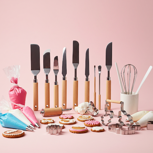 - Paletmessen en spatels: Onmisbaar voor het egaal aanbrengen en verdelen van crèmes, vullingen en glazuur.