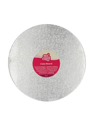 Het FunCakes Cake Board Rond Ø27,5 cm - Zilver is een kwalitatief hoogwaardig, zilverkleurig board met een luxe uitstraling. Dit bord dient als onderbord voor taarten, heeft een diameter van ongeveer 27,9 cm en een dikte van 4 mm. Bij normaal gebruik is het onderbord meerdere keren te gebruiken.
