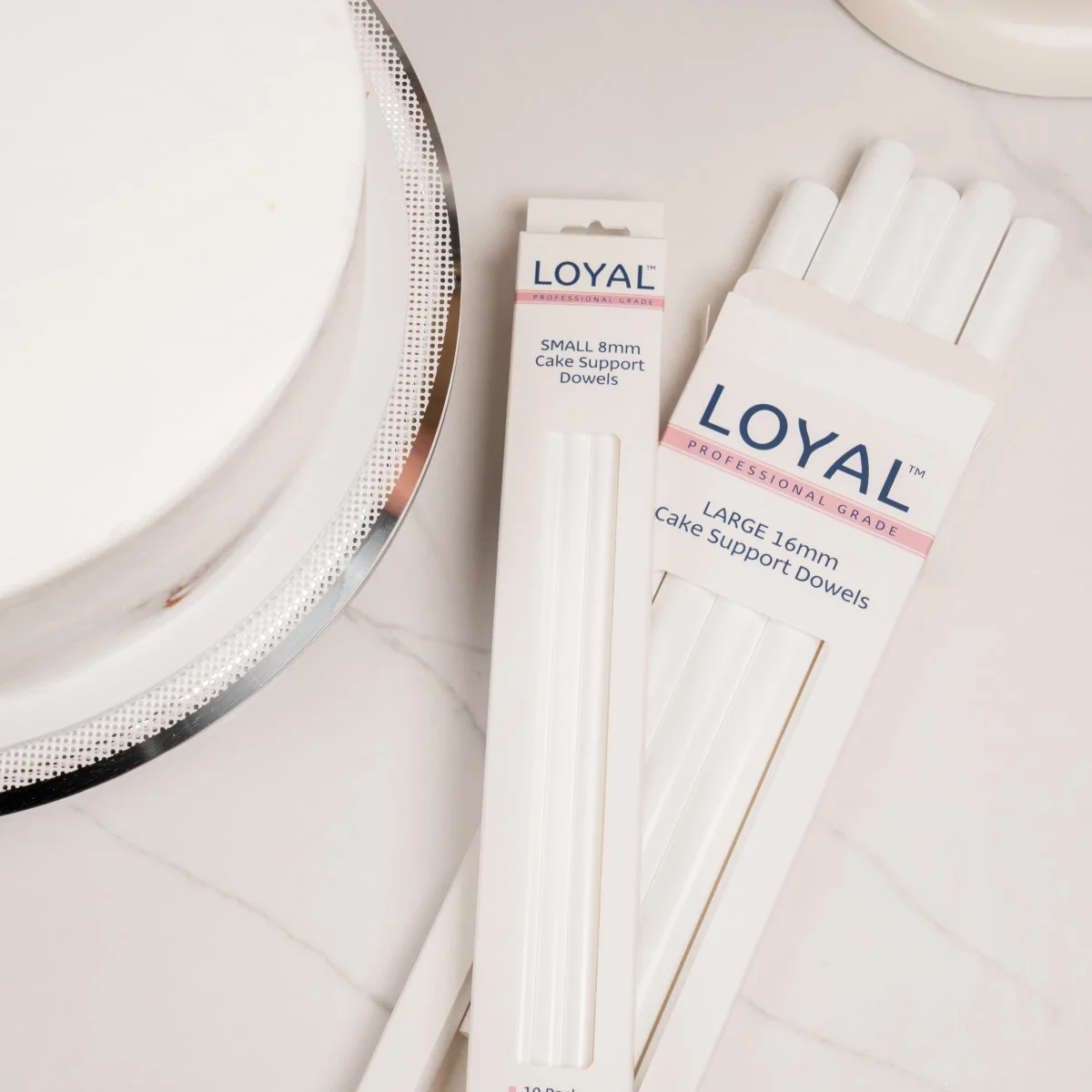 LOYAL Cake Dowels Heavy Duty Large bieden de betrouwbaarheid en stevigheid die nodig zijn om hoge taarten te creëren zonder zorgen over stabiliteit. Ze zijn eenvoudig op maat te maken en zorgen voor perfecte ondersteuning, waardoor je taarten er niet alleen geweldig uitzien, maar ook veilig en stevig blijven staan.