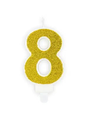 De PartyDeco Verjaardag Kaars Nummer 8 - Goud is een elegante toevoeging aan elke verjaardagstaart. Met een glanzende gouden afwerking en een hoogte van 7 cm, maakt deze kaars elke achtste verjaardag extra feestelijk. Een schitterende blikvanger!