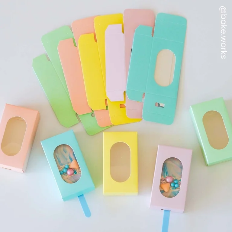 Dankzij het transparante venster aan de bovenkant van elk doosje kunnen je cakesicles direct bewonderd worden zonder dat de verpakking geopend hoeft te worden. Dit maakt ze perfect voor cadeauverpakkingen, verkoopdoeleinden of gewoon om indruk te maken op vrienden en familie. Bovendien zijn de doosjes eenvoudig in elkaar te zetten, zodat je snel en moeiteloos een prachtige presentatie kunt creëren.