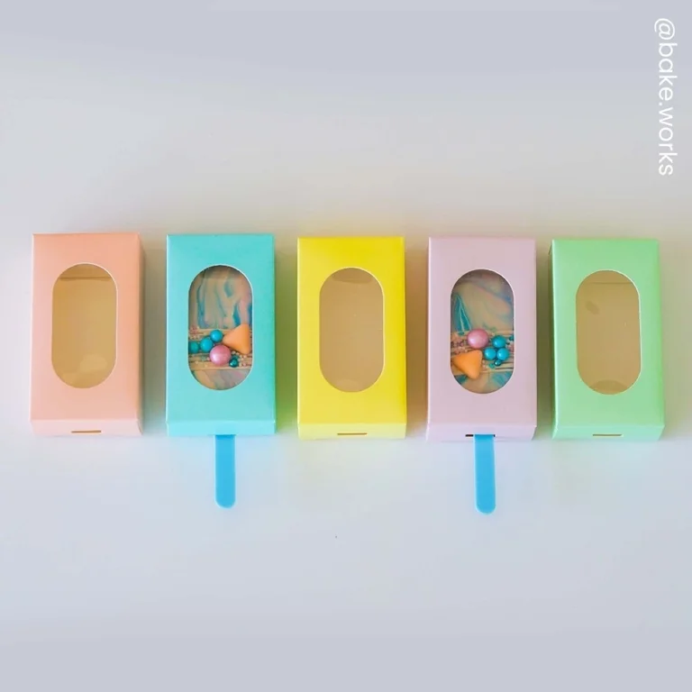 Dankzij het transparante venster aan de bovenkant van elk doosje kunnen je cakesicles direct bewonderd worden zonder dat de verpakking geopend hoeft te worden. Dit maakt ze ideaal voor cadeauverpakkingen, verkoopdoeleinden of gewoon om indruk te maken op vrienden en familie. Bovendien zijn de doosjes eenvoudig in elkaar te zetten, zodat je snel en moeiteloos een prachtige presentatie kunt creëren.