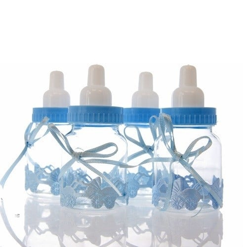 - Combineer de zuigfles met blauwe muisjes, eetbare sterretjes of zilveren pareltjes voor een stijlvolle en feestelijke presentatie.