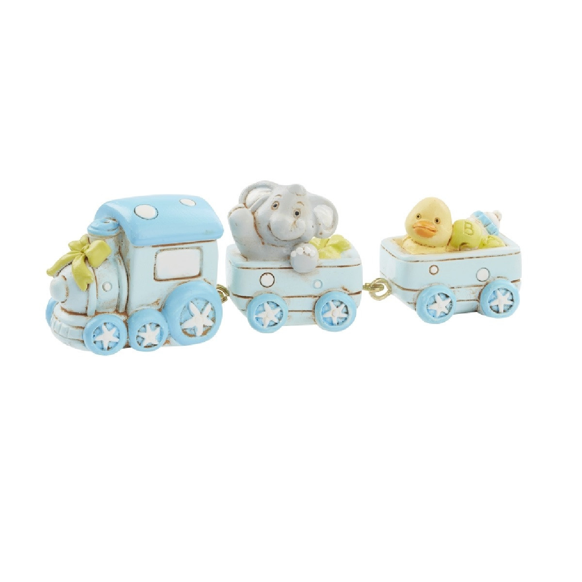Taarttopper Treintje Blauw Polystone 9x2,5 cm